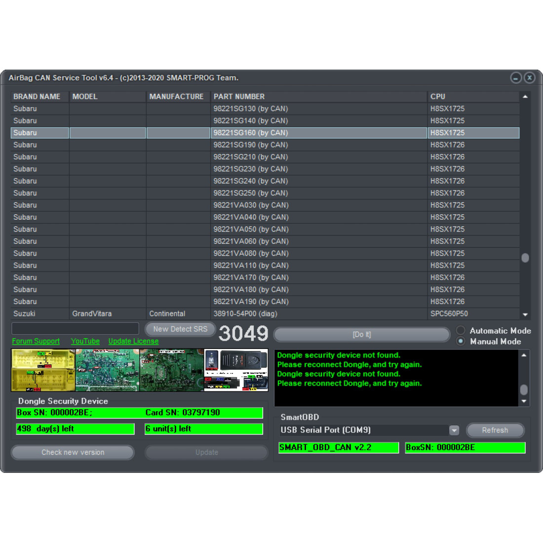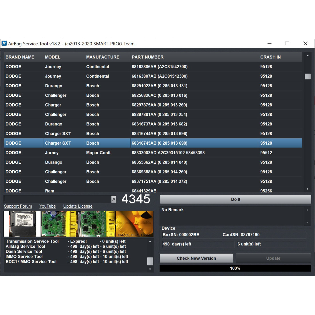 | Supported Modules | Thousands of Airbag Units |